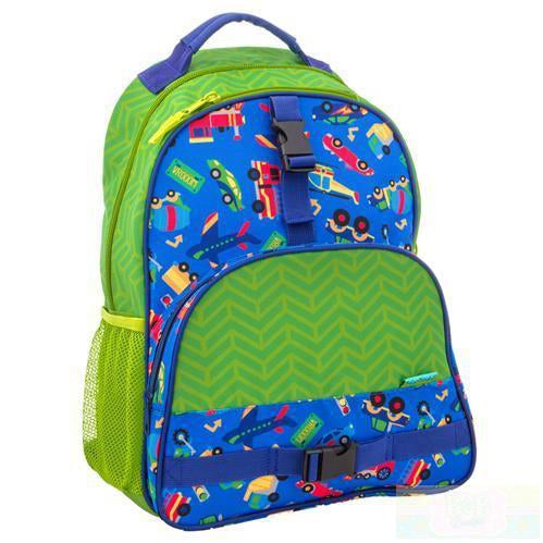 Fun and functional, kids will be “all over” the Stephen Joseph All Over Print Backpack. Perfectly sized for school age kids, these bags are large enough to carry your children’s school books and required day-to-day school supplies and still leave room for a change of clothes for playtime after class. All Over Print Backpacks are durable enough that they also make for a great summer camp or sports bag. This backpack has many of the same features found on adult size bags– three storage compartments, padded and adjustable shoulder straps for comfort, double sided mesh water bottle pockets, two outside hook-on straps, and an inside elastic pocket with name tag. Be sure to gear up with the matching Stephen Joseph All Over Print Lunchboxes. Want to make it even more individual? Then why not personalize it with your child’s initials or name?