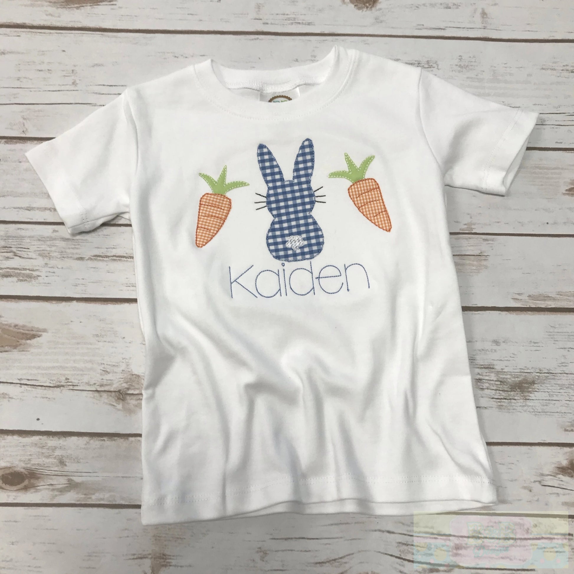 How adorable is this short sleeve shirt with the cutest bunny and carrots applique? Precious with pants or shorts for Easter egg hunting!