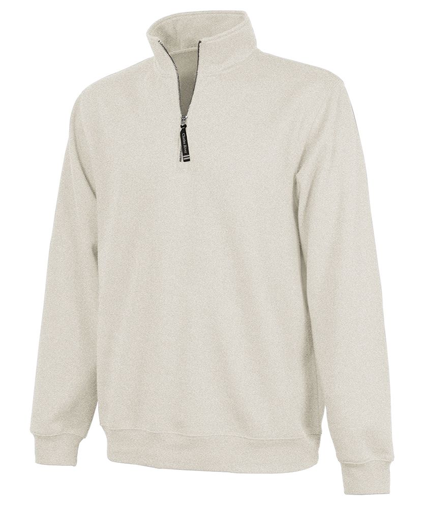 - Relaxed quarter zip sweatshirt styling with convenient on-seam pockets
