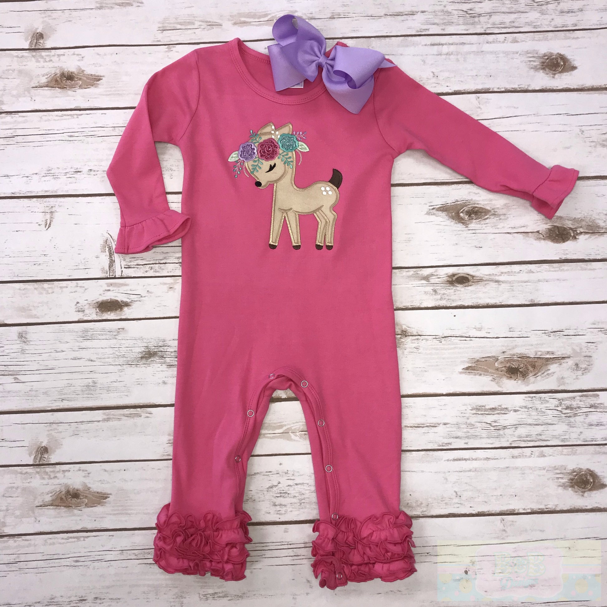 Deer Ruffled Long Sleeve Romper