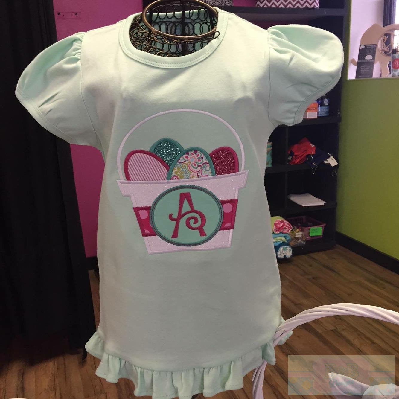 How adorable is this mint ruffled shirt sleeve shirt with the sweetest Easter Egg Bucket appliqué? Precious with pants or shorts for Easter egg hunting!