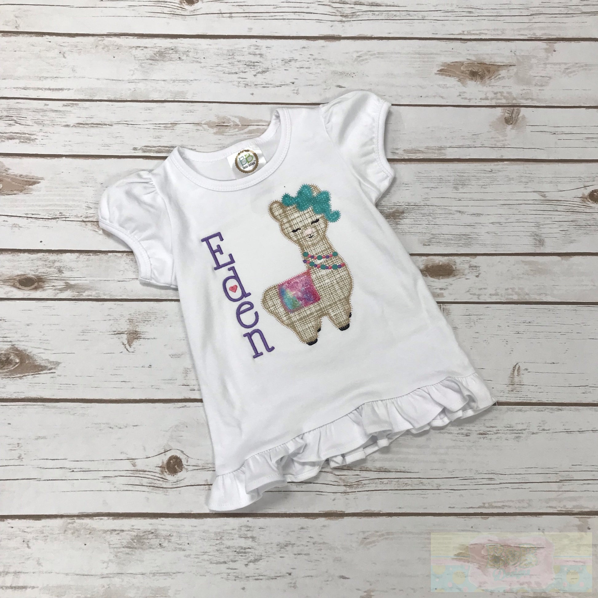 How adorable is this white ruffled shirt sleeve shirt with the most adorable llama applique? Precious with pants or shorts for wearing all spring and summer!