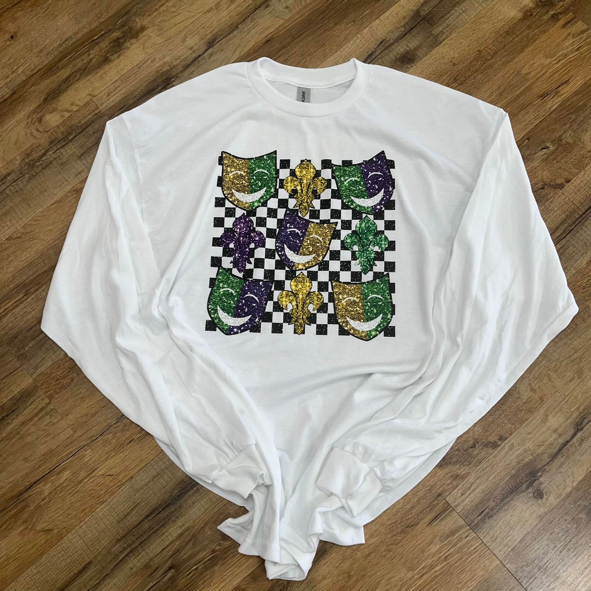New Orleans and Mask Checker Board Mardi Gras Shirt
