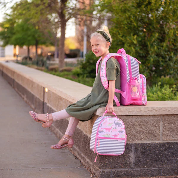 Kids will be “all over” the Stephen Joseph All Over Print Lunchbox. Perfectly sized for school age kids, these fun and functional lunchboxes are not only well designed but durable. Large enough to carry your children’s lunch and snack needs for school or even a day trip or picnic. The All Over Print Lunchbox features a spacious insulated interior compartment, an outside storage pocket– perfect for mealtime accessories like utensils and napkins, an interior elastic and mesh pocket, and an exterior mesh water bottle holder. Be sure to gear up with the matching Stephen Joseph All Over Print Backpacks. Want to make it even more individual? Then why not personalize it with your child’s initials or name?